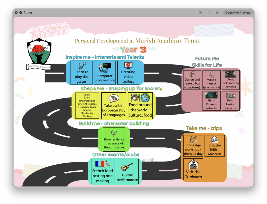 We promote physical and mental wellbeing, celebrate equality and diversity, and live out our school values every day. Pupils learn about British values and heritage, explore different cultures, and take part in rich experiences that build character, resilience, and lifelong memories.